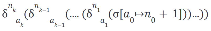 The nonces of the authorization and sender addresses are updated in the state σ[a₀ ↦n₀ + 1] before applying the effects of the authorization list. We use an auxiliary function to update the authorizations’ nonces in the authorization list. The auxiliary function δ has two parameters n and a. The authorization updates of the state work as follows: If the state has a matching nonce n for the address a, the nonce in the state is incremented for the address a; otherwise, the state is unchanged. The delta functions are composed with the function composition operator for a compact representation of the T-SUCC rule, which represents a nested function composition, reflecting the nonce changes of a successful EIP-7702 transaction: