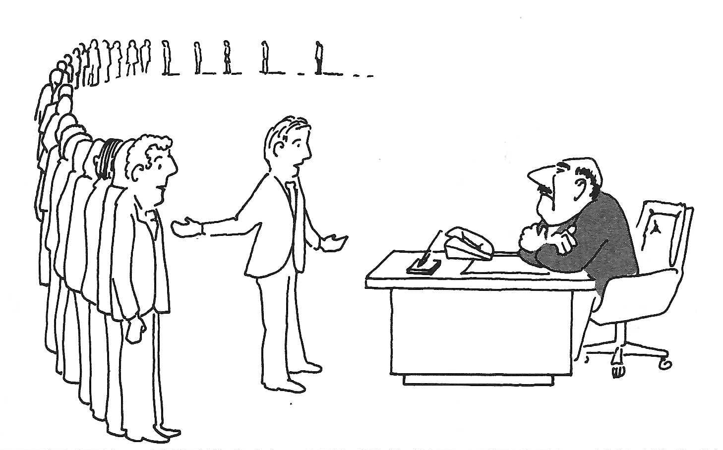 Instances of a problem in NPc can be reduced to other problems in NPc. From a computational perspective, they are all equivalent and form a class. If one problem can be solved efficiently, all problems in NPc can be solved efficiently. Such hard problems include finding the longest path in a graph and the traveling salesman problem. The list of NPc problems is very long. The problem is very well illustrated in the book "Computers and Intractability" as a cartoon: A boss calls in an employee in charge of designing and implementing an NPc algorithm. He cannot find an efficient way but has the idea to point the blame at others: