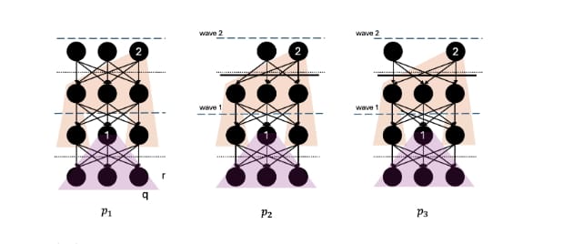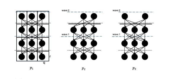 Moreover, each node receives vertices from other nodes. The sent and received vertices form a DAG where each vertex points to several previous parent vertices. The interpretation of a parent edge is that the transactions in the parent vertices happened before the transactions in the current (child) vertex. However, we need a total order of the vertices to produce a block. As shown in Figure 2, we need anchor vertices that can consistently break symmetry in a partial order across nodes and ensure that a predetermined topological order can be carried out to produce the same block in all nodes.