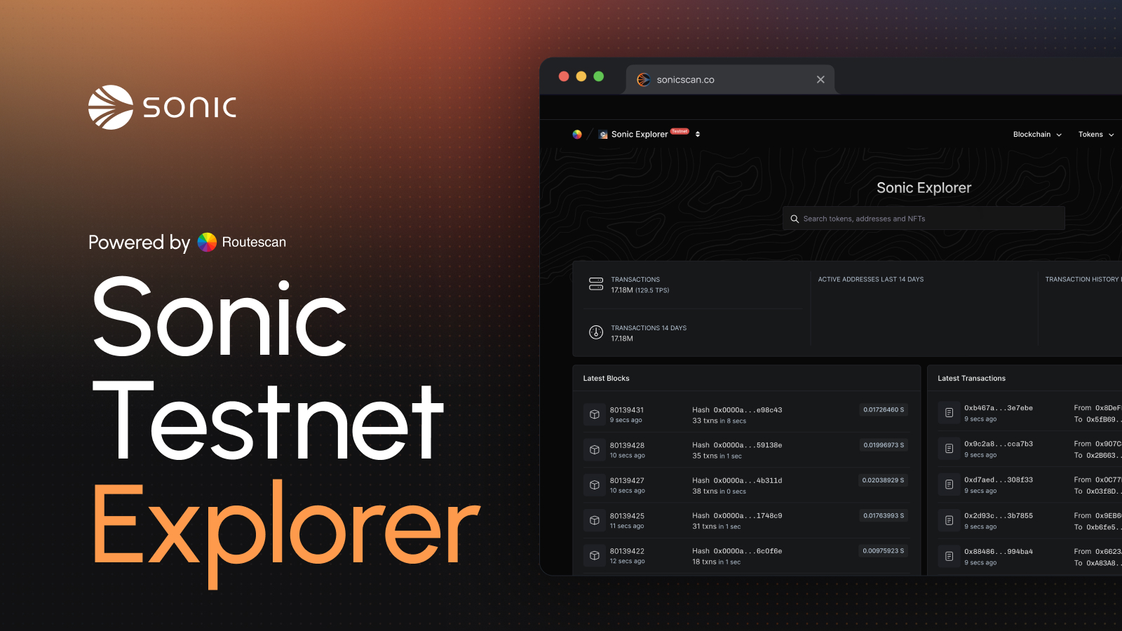 The Sonic testnet explorer is live, powered by Routescan. Due to large transaction history, only chain data from Oct. 1 will be indexed.